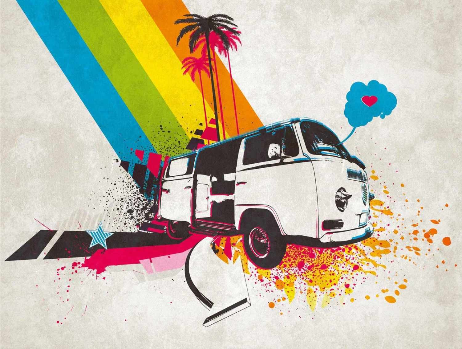 A.S. Creation Fototapeten Retro Auto Bus Palmen Weiß Bunt 38302-1
