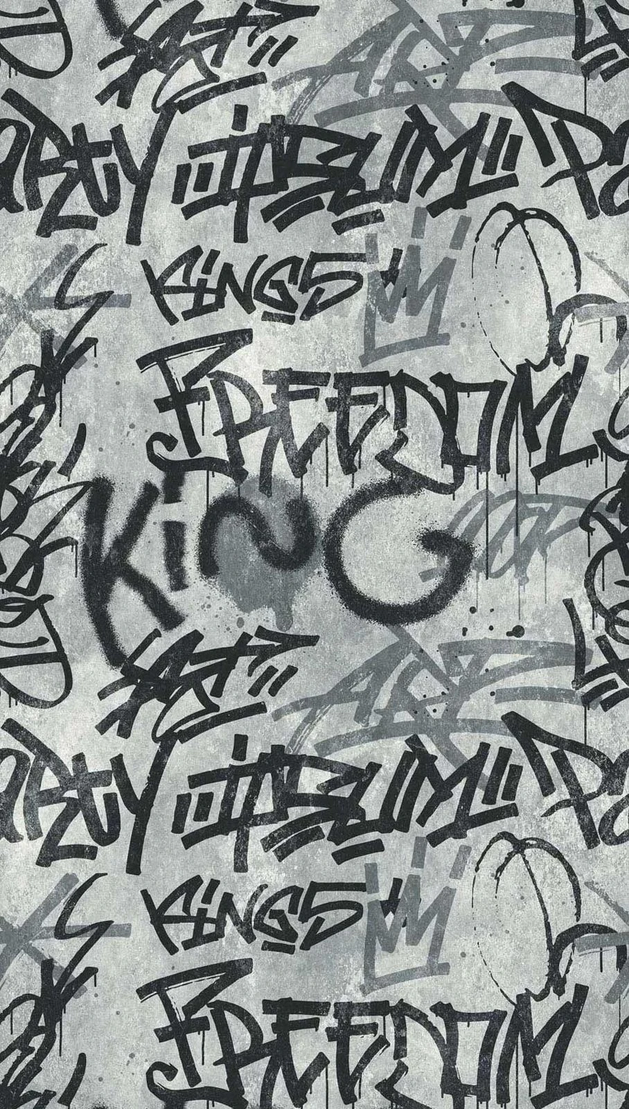 Digitaldruck mit Graffitis in grau, schwarz – 38251-1 | 382511