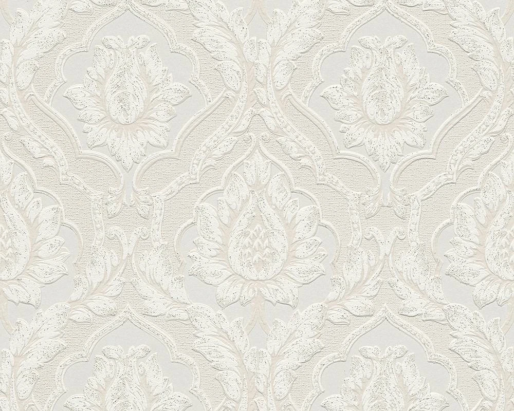 Vinyltapete Barock Floral silberweiß Glitzer AS 3448-16