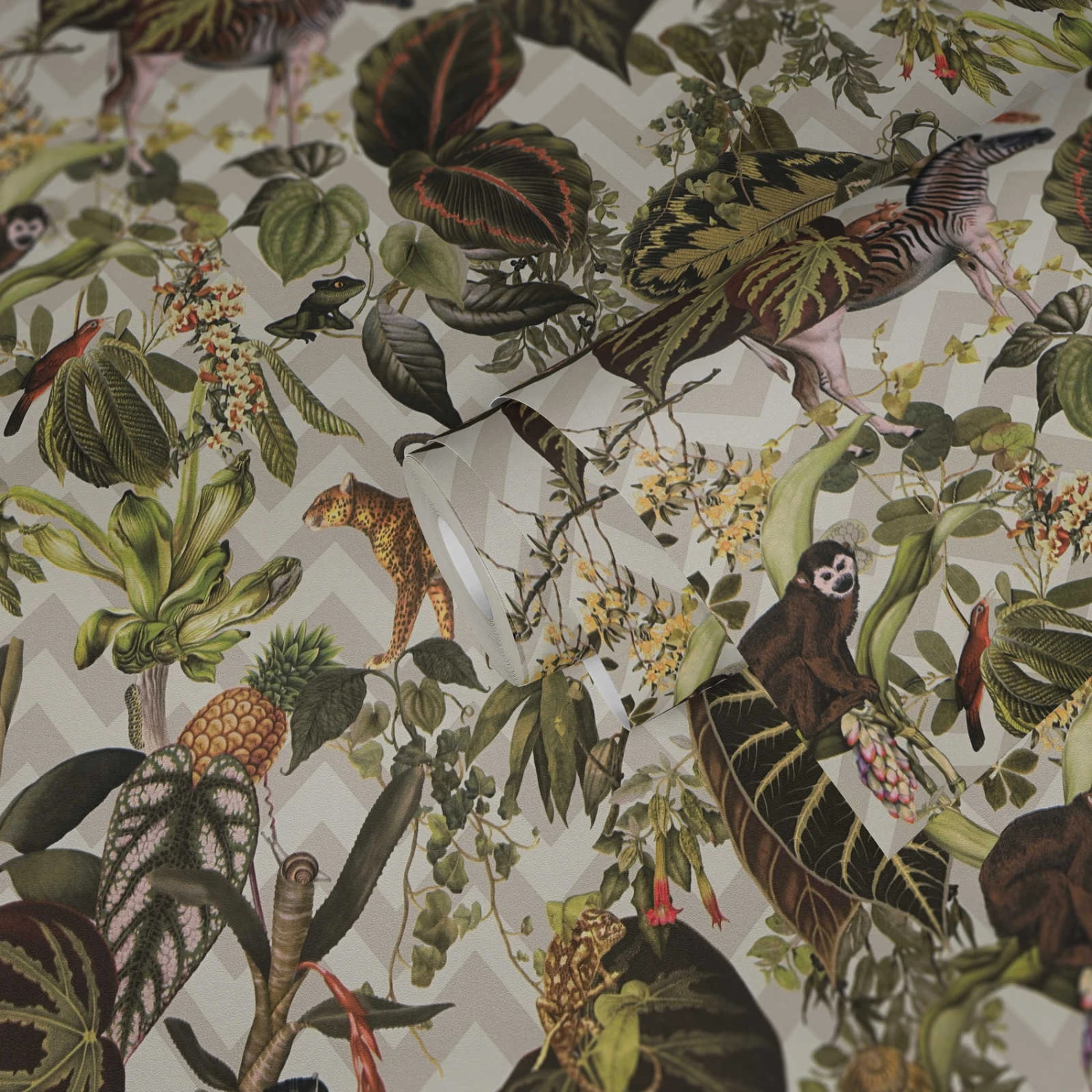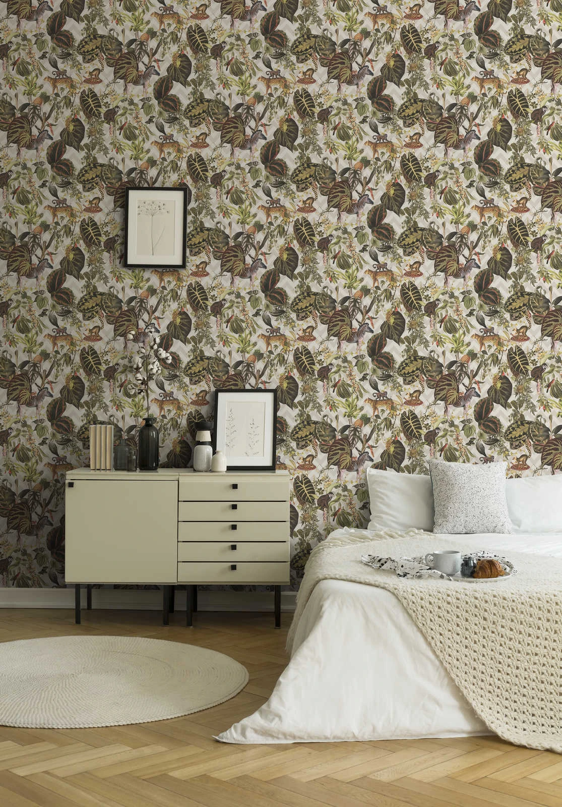 Wieder einmal sind wir von den Tapeten aus der Kollektion „Change is Good“ von Michael Michalskys absolut überzeugt. Seine fünfte Tapeten-Kollektion unter dem Titel Metropolis ist eine Zusammenstellung aus stylischen und modernen Mustern und Designs. Die Tapete 37990-3 mit Dschungel-Muster in beige, grün, bunt sorgt für ein angenehmes Wohngefühl und lädt zum Verweilen ein.