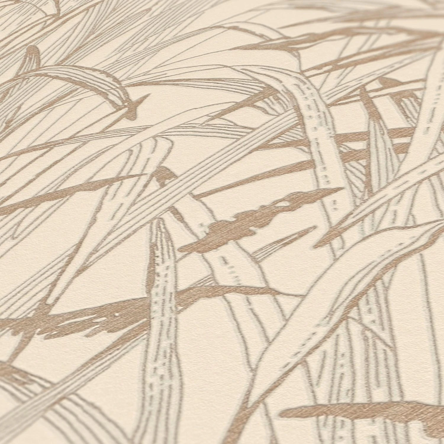 A.S. Création Vliestapete 386002 aus der Kollektion #hygge in weiß Kupfer metallic mit Blattmotiv