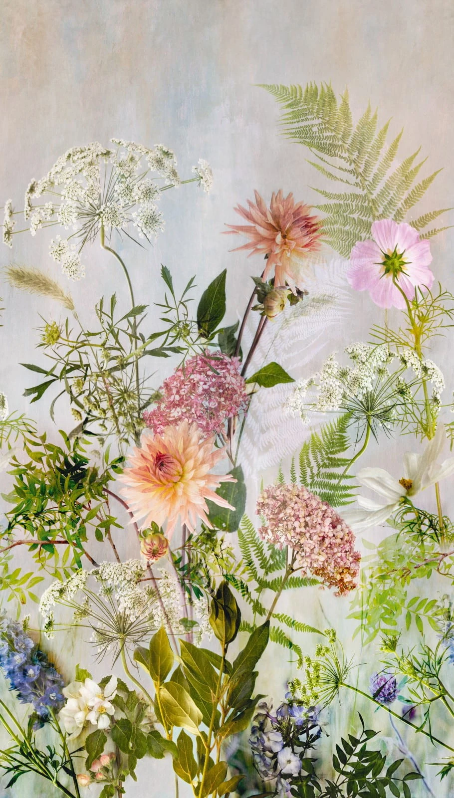 Digitaldruck Blumen Vintage Grün Rosa Grau ML2001