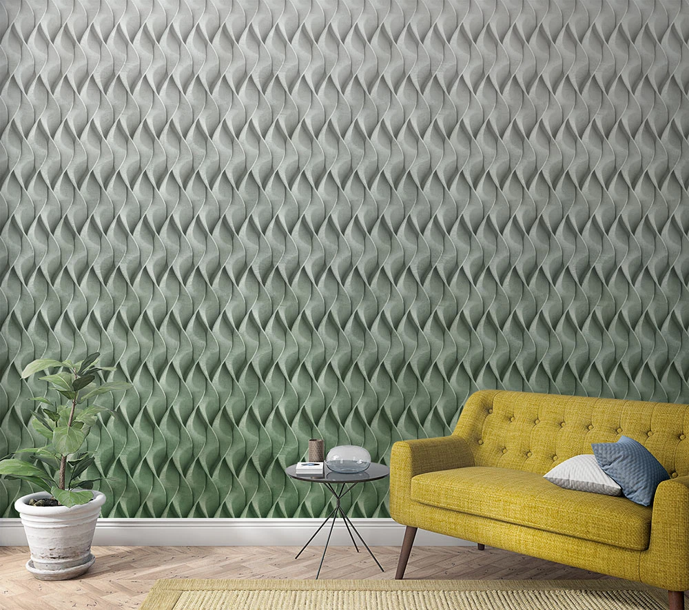 Fototapete Vlies 3D Wellen Grafisch Grau Grün 47252