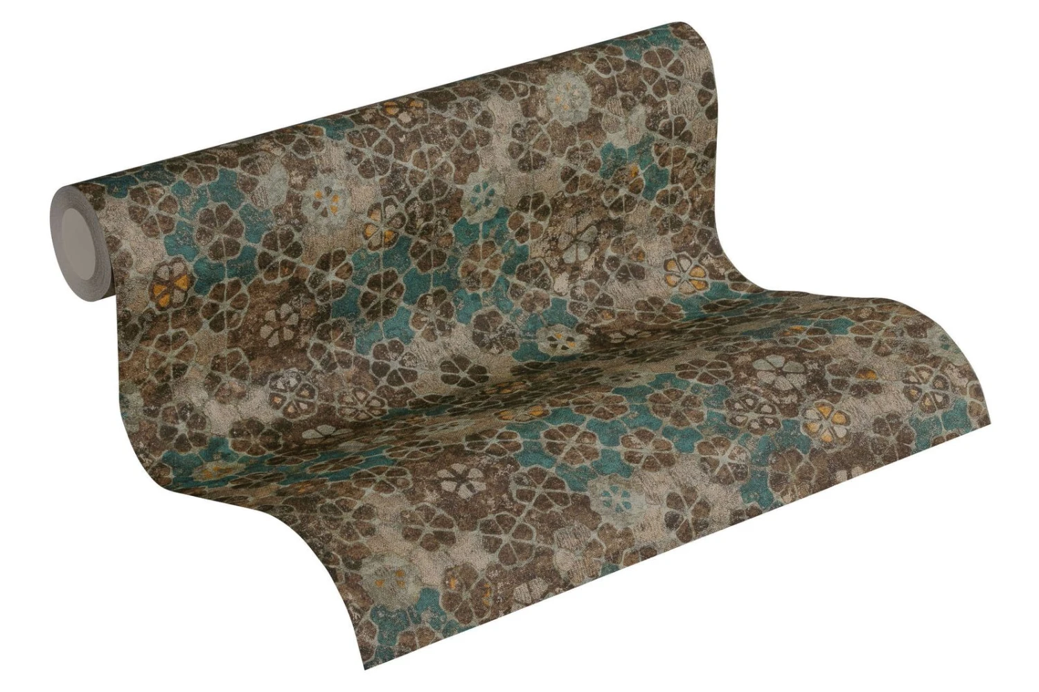 Vliestapete Vintage Fliesen türkis braun beige silber Glitzer livingwalls New Walls 37391-1 | 373911