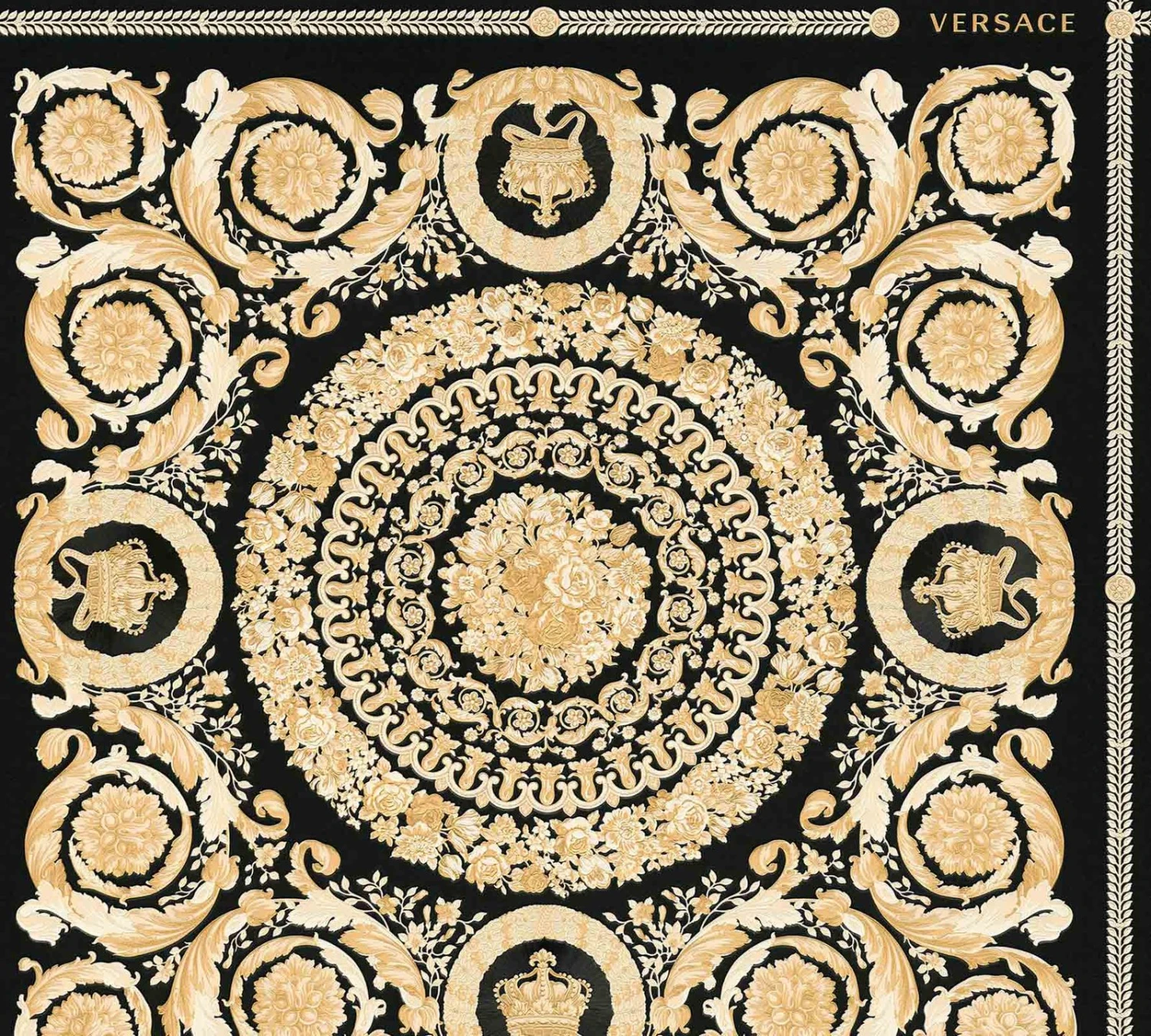 Versace Home IV Vinyltapete Große Kacheln Barock schwarz gold weiß Metallic 370553 | 37055-3
