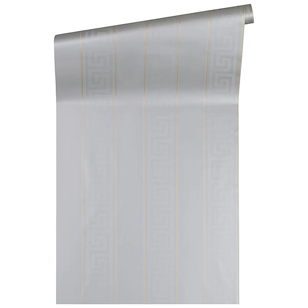 Die Einrichtungsmarke Versace Home steht für exklusives und hochwertiges Interiordesign. Dabei erfindet sich die Designermarke mit ihren glamourösen Kreationen immer wieder neu und setzt damit unangefochtene Maßstäbe im Einrichtungsbereich. Mit der dritten Auflage der erfolgreichen Versace Home Tapetenkollektion setzt die Luxusmarke erneut ausdrucksstarke Akzente im Wohnbereich. Inspiriert von Prunk und Eleganz sowie der griechischen Mythologie verzaubert Sie die Versace Vliestapete 93524-5, aus der Themenreihe Greek, mit einem antiken Ambiente. Dieses Ambiente wird durch das kräftige Kolorit aus grau und gold Glanz sowie der aufregenden Rillenstruktur stilvoll in Szene gesetzt. Die Kombination aus Farbe und Struktur führt letztendlich dazu, dass das Streifenmuster mit griechischen Elementen zum Hauptaugenmerk Ihrer Wandgestaltung wird.